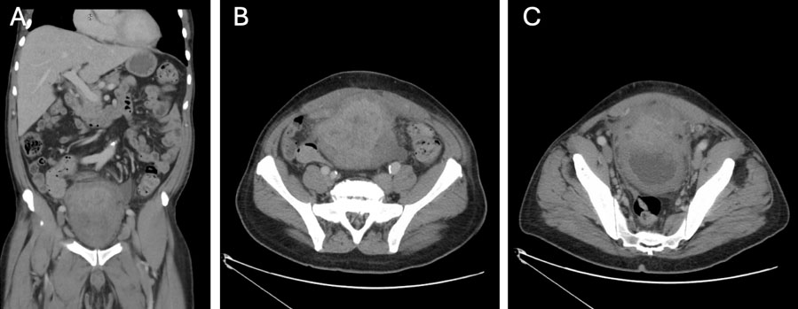Inguinal hernia is a very common pathology worldwide. Global incidence is about 4–5%. The most commonly involved organs are the abdominal viscera. As far as urology is concerned, urinary bladder is involved in approximately 0.5–4% of all inguinal hernias, while finding the ureters is truly a rarity, about 150 cases worldwide. Ureteral hernias could be an incidental finding but it is important to know about their existence to avoid injury during surgery. We present the case of a 71-year-old man with a finding of right ureteral hernia incidentally diagnosed during computed tomography (CT) scan for an abdominal abscess.